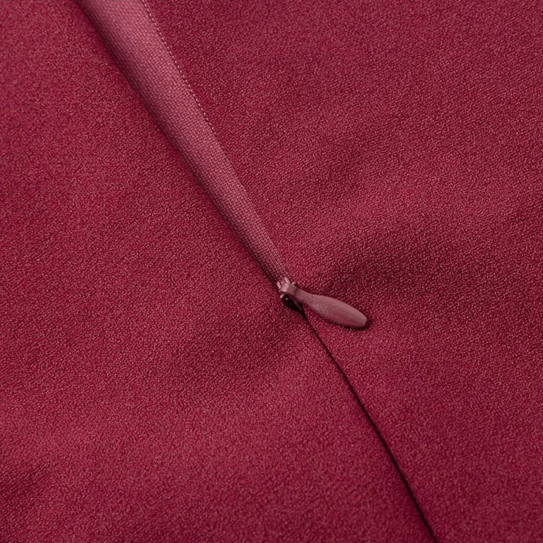 Damenkleid mit langen Ballonärmeln und rundem Ausschnitt. Das Kleid ist tailliert, hat einen weiten Rock mit einer Länge über dem Knie und einen Reißverschluss auf der Rückseite. Erhältlich in zwei Farben – Schwarz und Burgunder.