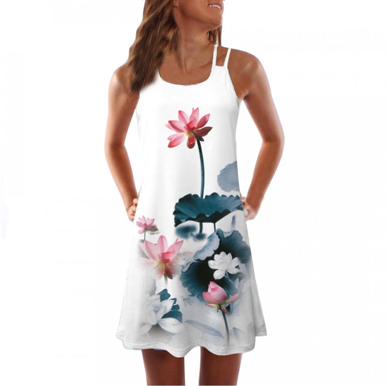 Damenkleid mit lockerer Passform und doppelten Spaghettiträgern. Das Kleid hat einen runden Ausschnitt und gekreuzte Träger auf dem Rücken. Leichter, luftiger Stoff. In mehreren Varianten erhältlich.
