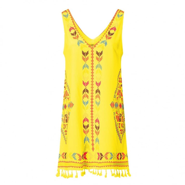 Damenkleid mit Fransen Lorinta – gelb