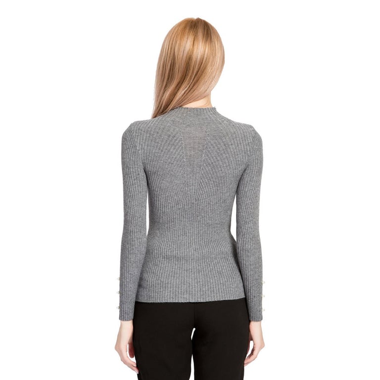 Damenpullover mit Rollkragen und langen Ärmeln. Universelle Größe. Der Pullover ist am Kragen und an den Ärmeln mit weißen Perlen verziert. Erhältlich in mehreren Farben.