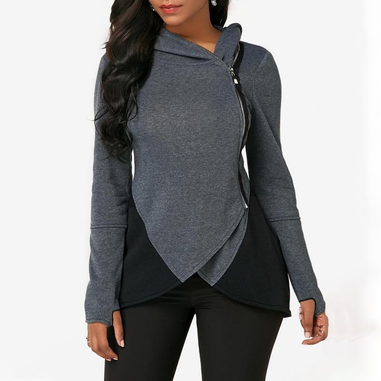 Eleganter Hoodie mit schrägem Reißverschluss und asymmetrischem Schnitt.
