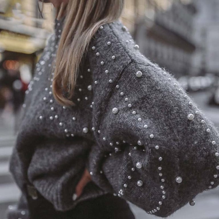 Ein großartiger Damenpullover, der Sie nicht nur wärmt, sondern in dem Sie auch absolut großartig aussehen werden. Probieren Sie die moderne Verzierung aus.