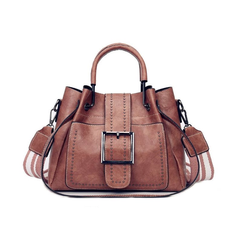 Damentasche im Lederlook mit kurzem Griff und zusätzlichem langen Schulterriemen. Auf der Vorderseite befindet sich eine Tasche und ein Verschluss. Erhältlich in drei Farben.