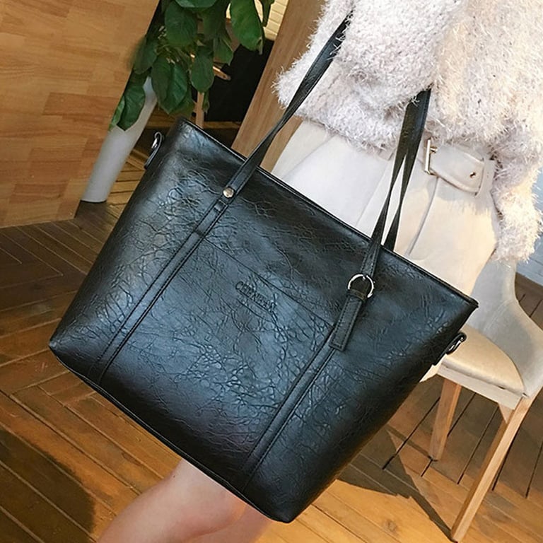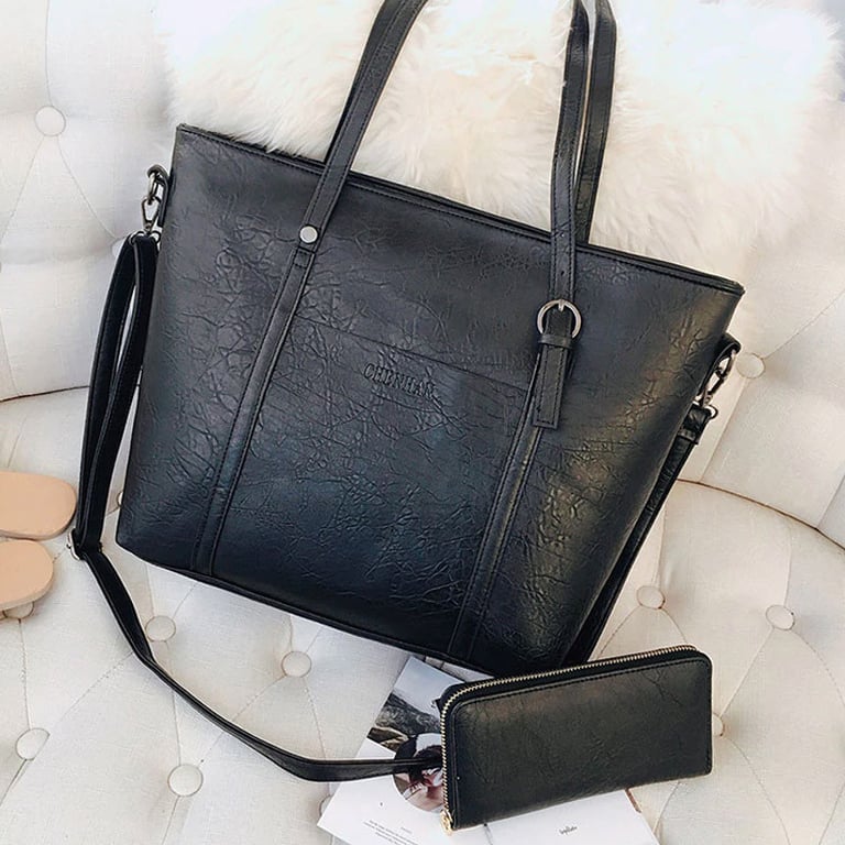 Damen große Handtasche und Geldbörse im Lederlook. Die Tasche hat einen großen Henkel zum Tragen in der Hand und einen langen zusätzlichen Schultergurt, verfügt über eine Seitentasche und einen Reißverschluss. Erhältlich in mehreren Farbvarianten.