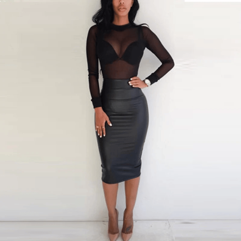 Damenmodebluse aus transparentem Material. Sie hat lange Ärmel und einen niedrigen Rollkragen. Erhältlich in zwei Farben.