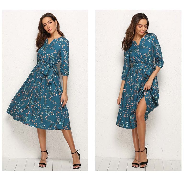 Damen elegante Kleider mit Blumenmuster, die sich ideal für den Frühling und Sommer eignen! Seien Sie bereit für warmes Wetter, der Versand ist bei uns kostenlos!