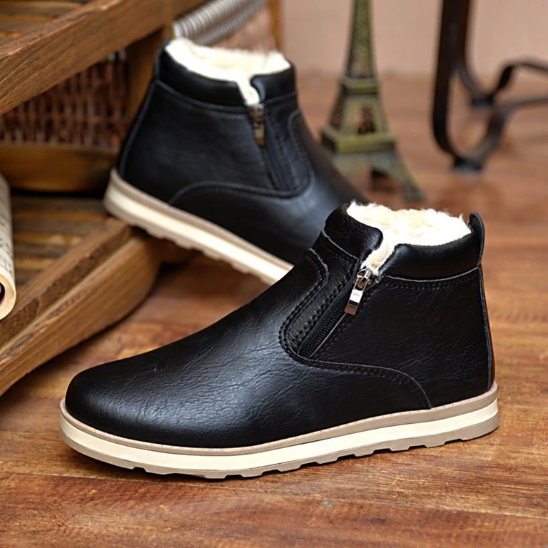Diese Herren-Leder-Winterstiefel mit Futter sind für kaltes Winterwetter geeignet.