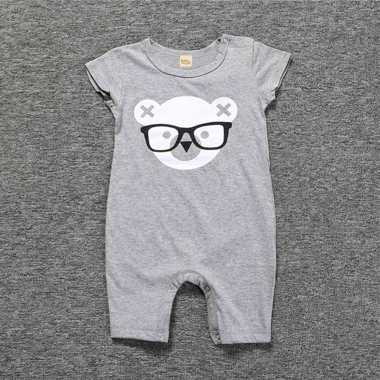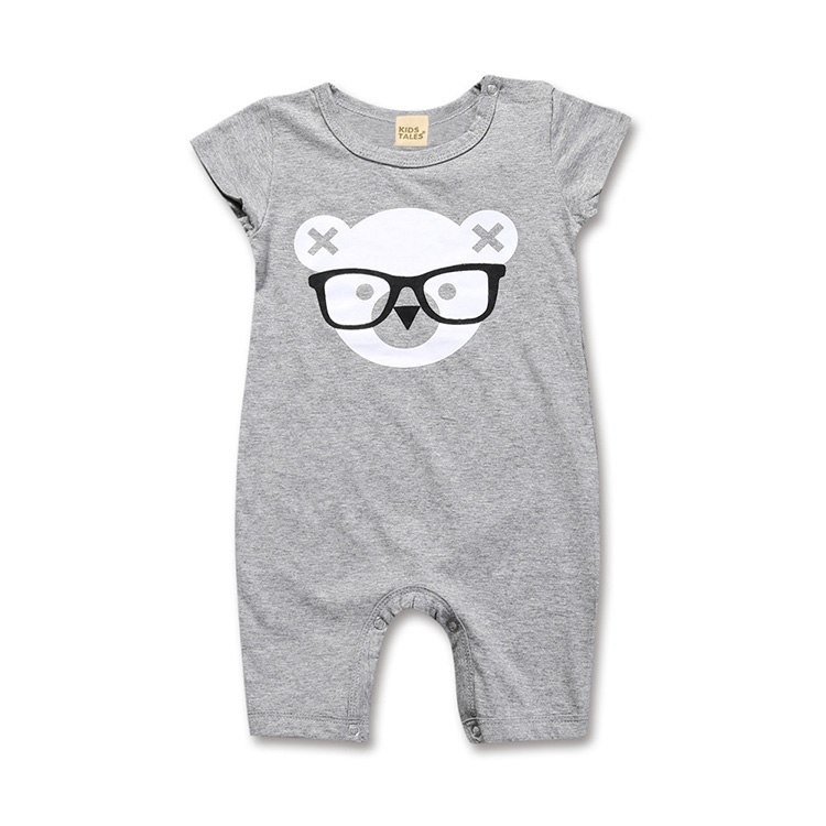 Kinderoverall mit kurzen Ärmeln. Druckknopfverschluss. Mit einem weißen Bären. In mehreren Varianten erhältlich.