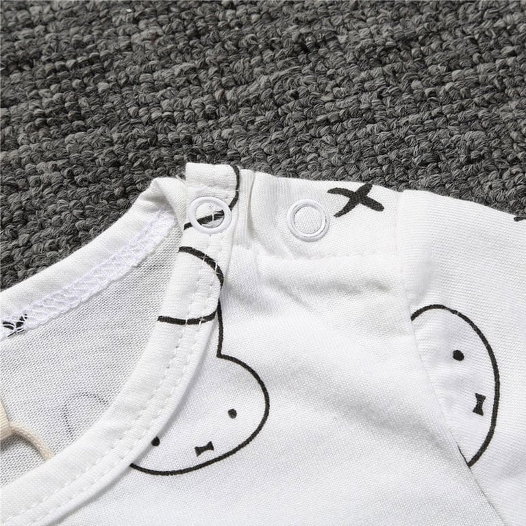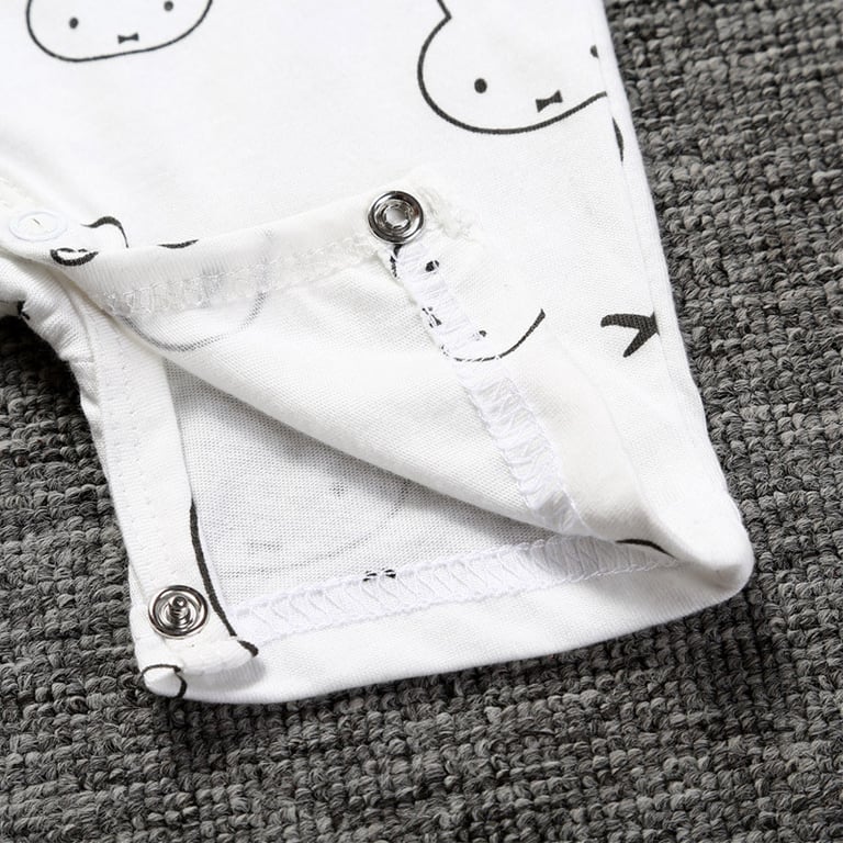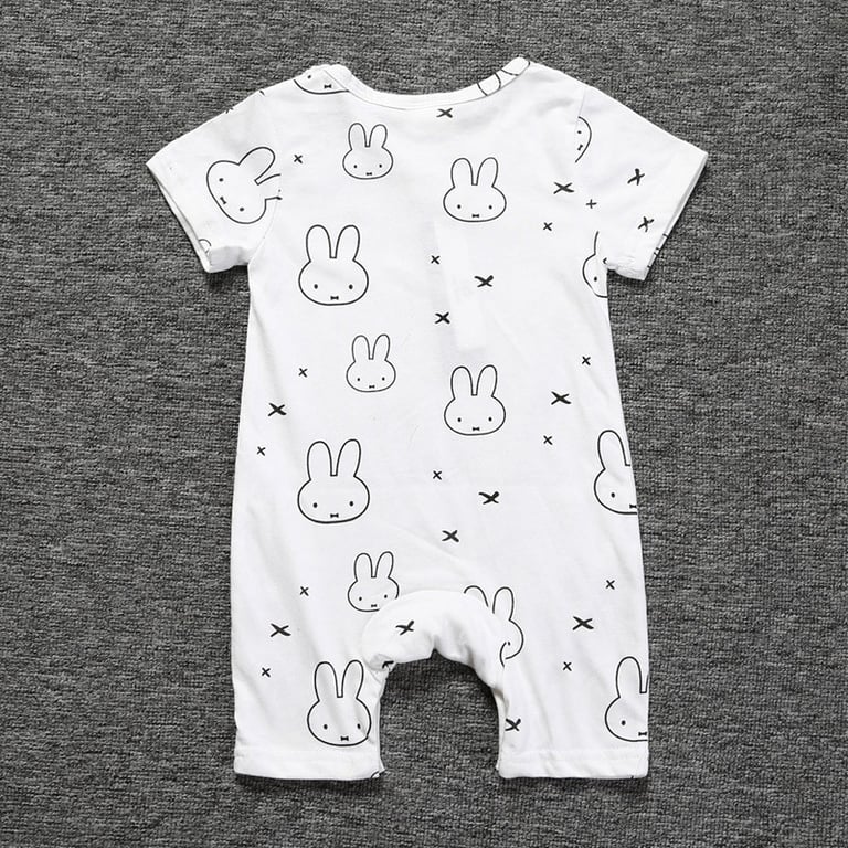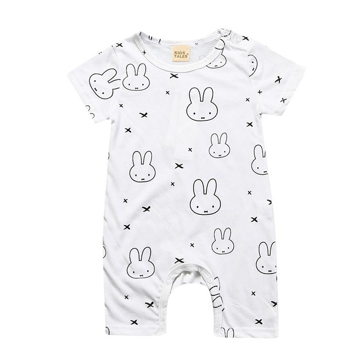 Kinderoverall mit kurzen Ärmeln. Druckknopfverschluss. Mit Druck von Hasen. In mehreren Varianten erhältlich.