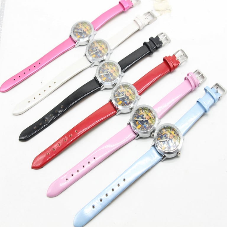 Uhren für Kinder mit einem glänzenden Armband in verschiedenen Farbkombinationen. Sie sind mit dem Motiv der Märchenfigur Feuerwehrmann Sam .
