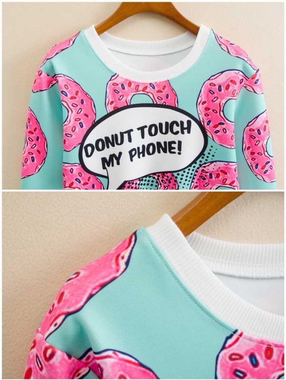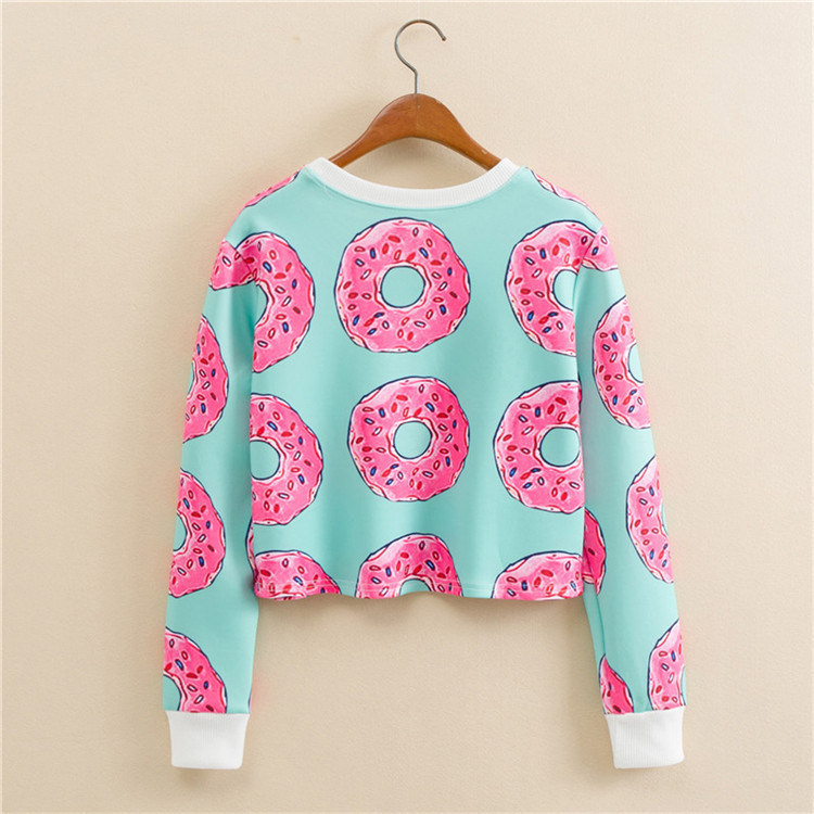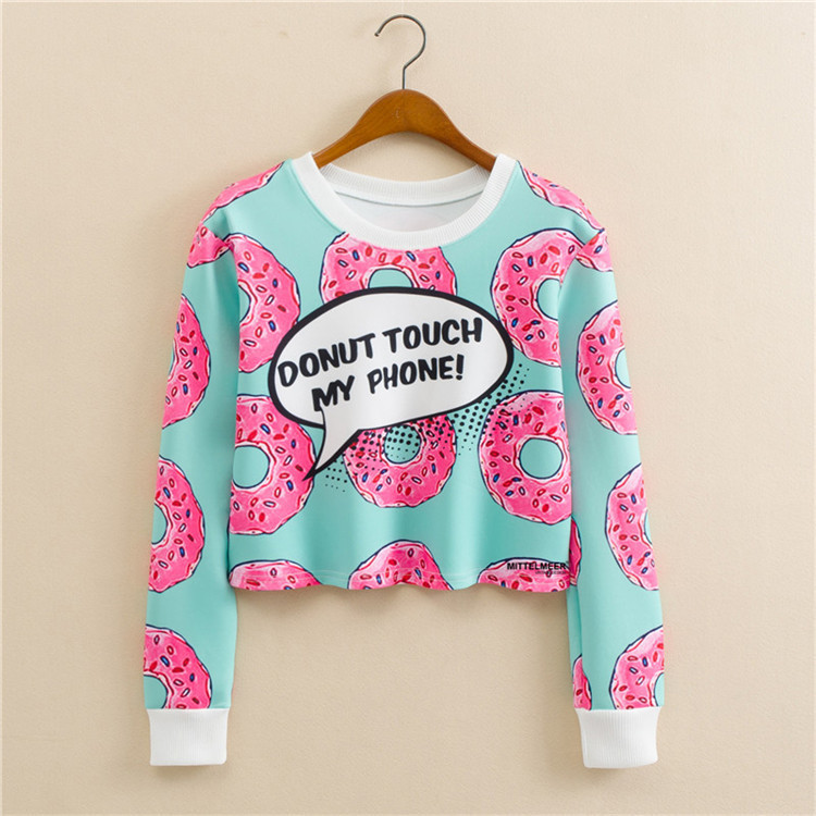 Crop-Top mit buntem Druck und langen Ärmeln.