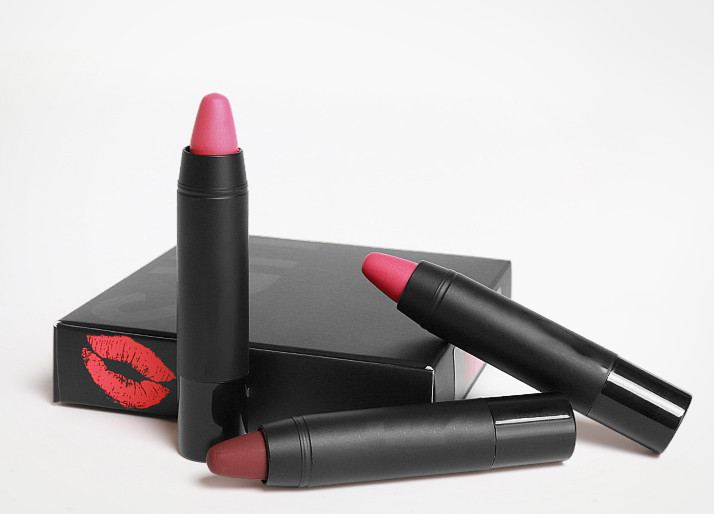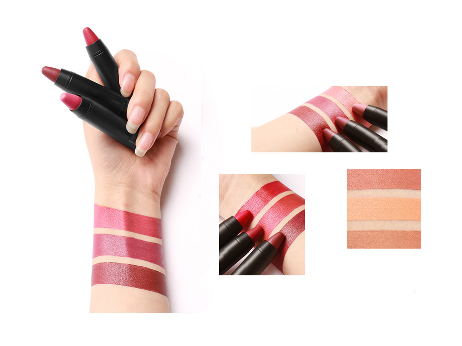 Set mit 3 Stück langanhaltenden Lippenstiften für Damen.