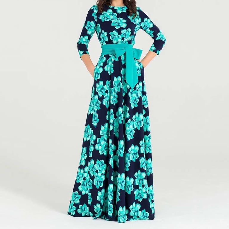 Lange blumige Kleider Florly – blau