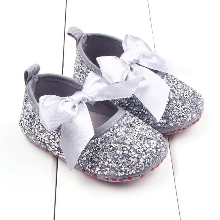 Mädchen Silberne Krabbelschuhe sind geeignet für kleine Prinzessinnen bis zu 1 Jahr.