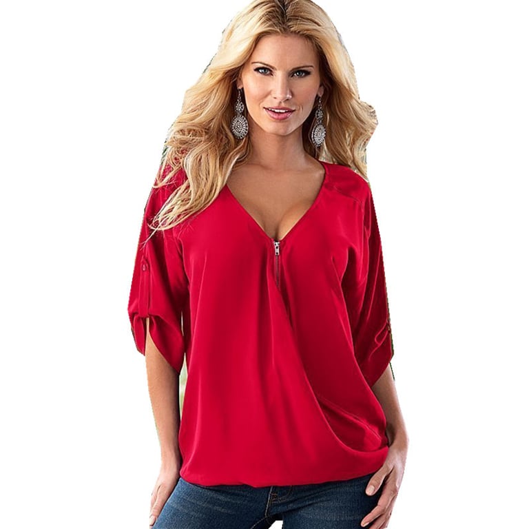 Wenn Sie Mode-Trends lieben, darf diese Bluse in Ihrem Kleiderschrank nicht fehlen. Auf den ersten Blick fällt der dezente Ausschnitt mit Reißverschluss und die interessant gestalteten Ärmel ins Auge. Bei der Auswahl der Größe orientieren Sie sich bitte an den in der Größentabelle angegebenen Maßen.