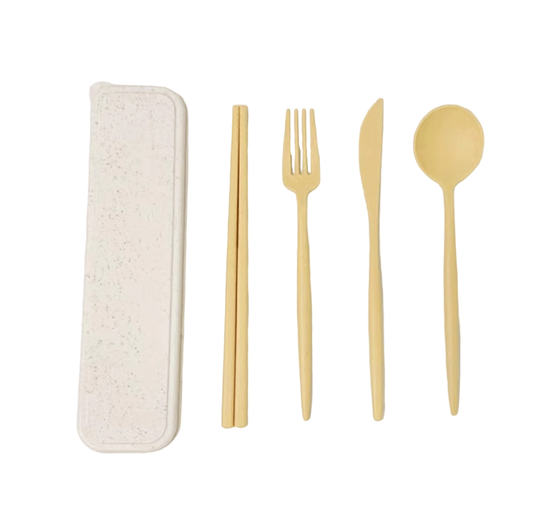 Inhalt der Verpackung: 1x Essstäbchen, 1x Messer, 1x Gabel, 1x Löffel, 1x Etui
