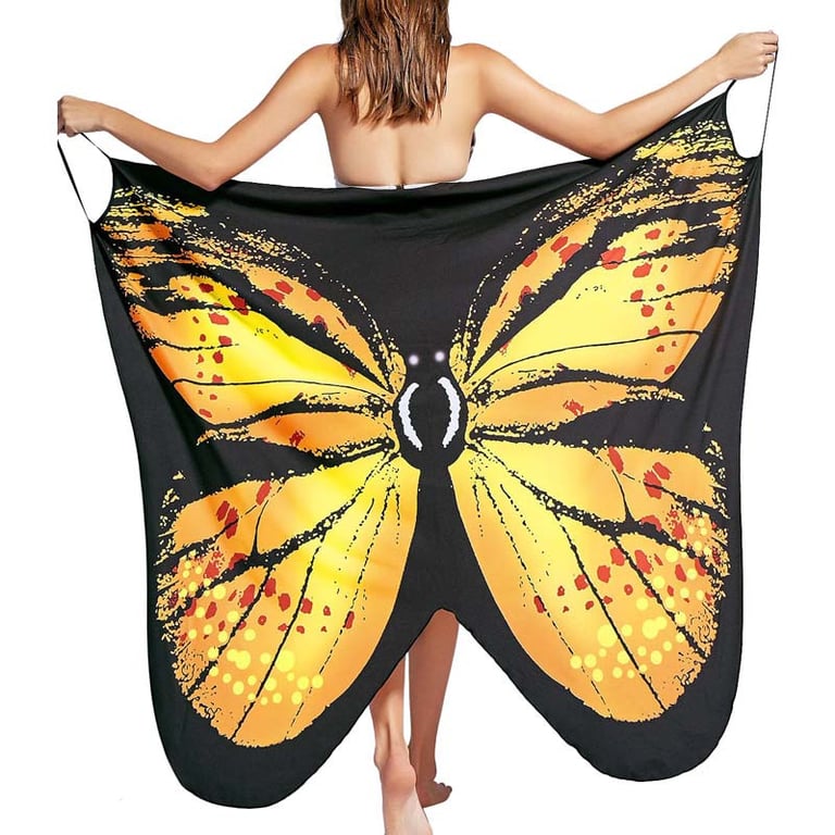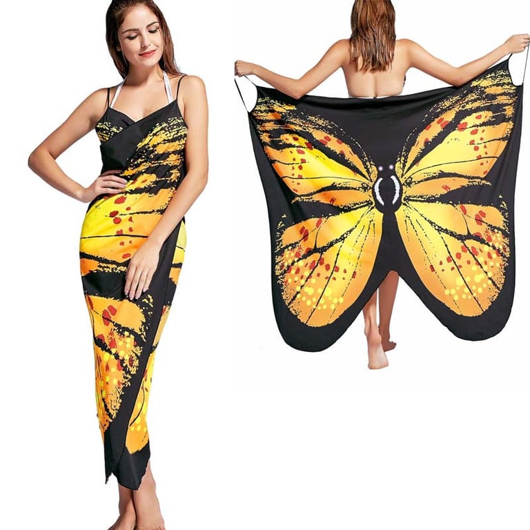 Stylischer farbiger Schal über dem Badeanzug mit Schmetterlingsmotiv, den Sie einfach überwerfen können und bereit sind, überall hinzugehen.