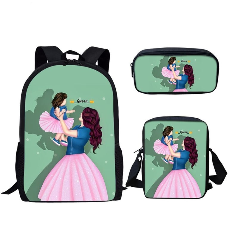 Set mit einem attraktiven Druck, bestehend aus einer praktischen Umhängetasche und einem Federmäppchen. Die Größe des Rucksacks beträgt 44 x 28 x 13 cm. Die Umhängetasche hat die Größe 23 x 17 cm. Das Federmäppchen misst 22 x 11 cm.