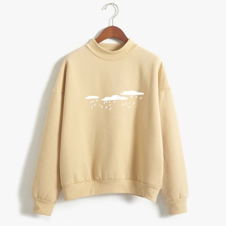 Einfarbiger Hoodie mit Wolken- und Regendruck.