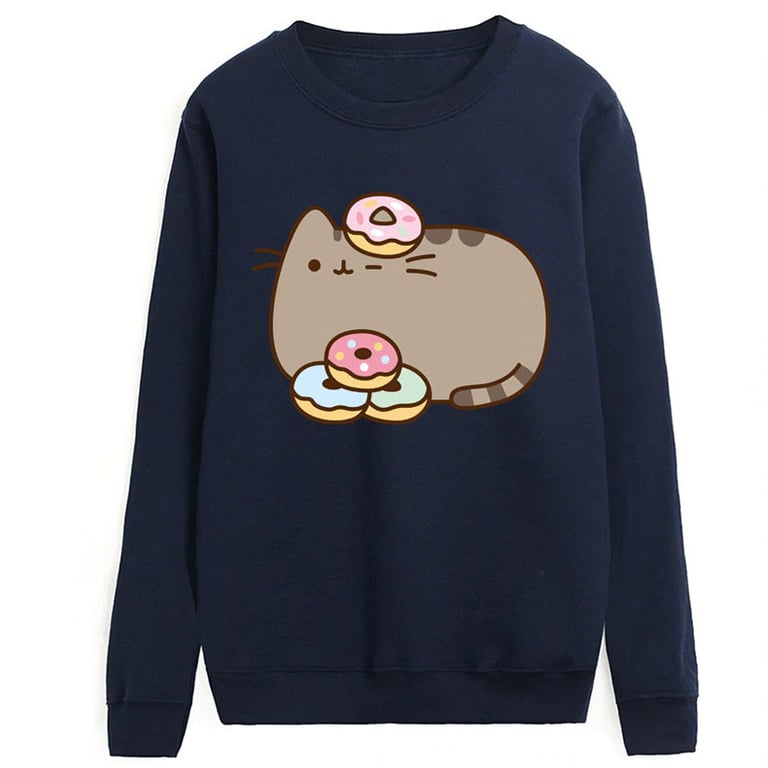 Stylischer Damenpullover mit Katze und Donuts, den Sie zu jedem Outfit tragen können!