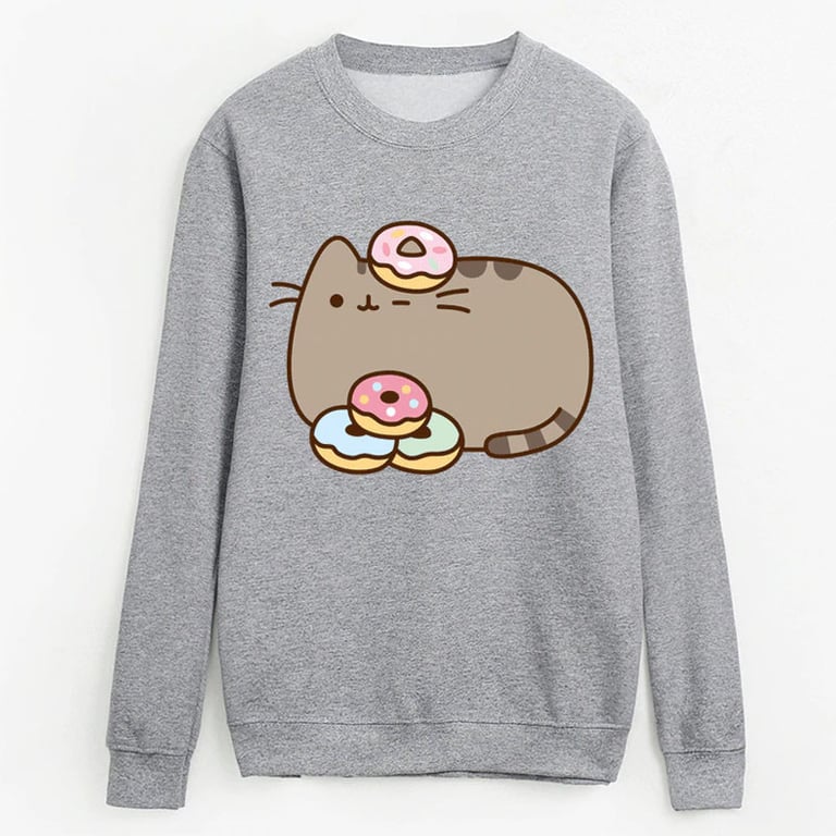 Stylischer Damenpullover mit Katze und Donuts, den Sie zu jedem Outfit tragen können!