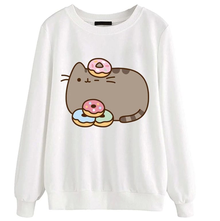 Stylischer Damenpullover mit Katze und Donuts, den Sie zu jedem Outfit tragen können!