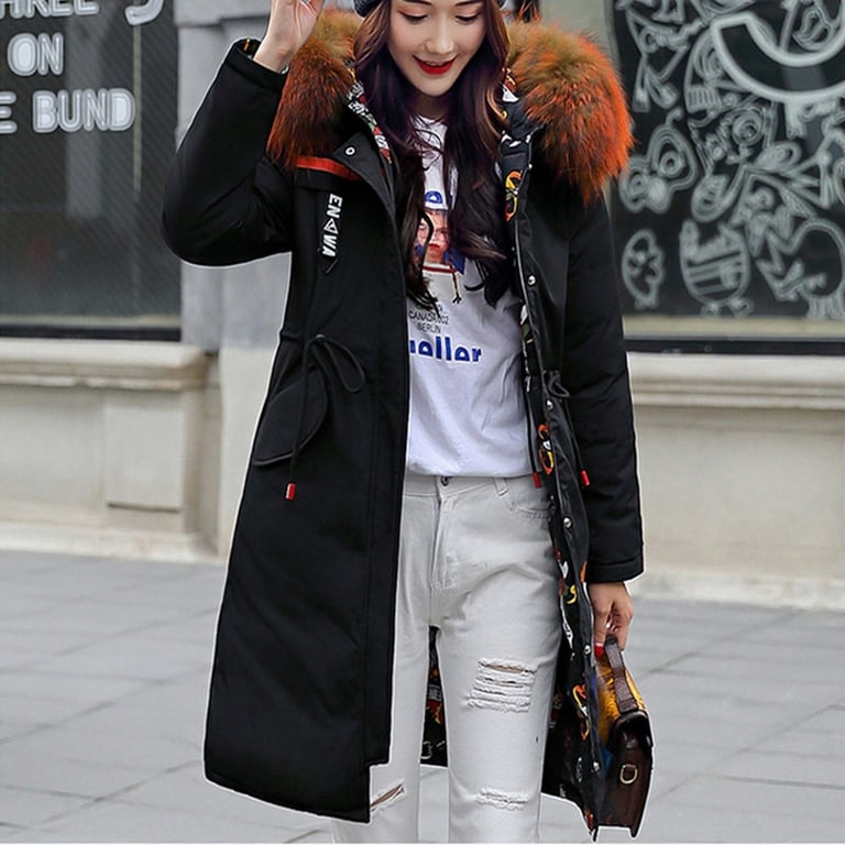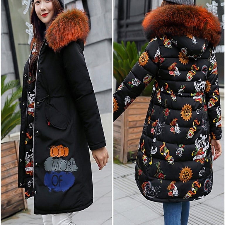 Der Mantel ist wendbar mit Aufschriften auf dem Rücken und Taschen.